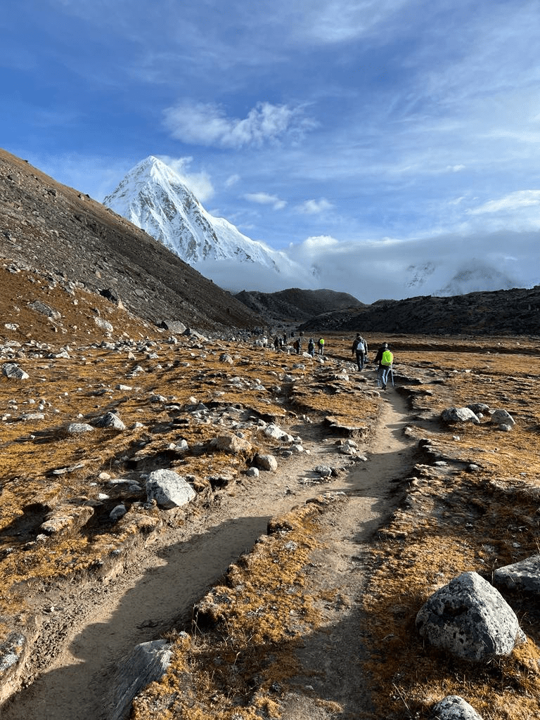 Towards the end of the way to Gorak Shep, the trek began to get a bit more challenging as we hiked through rock falls. We trekked through very rocky paths with loads of ups and downs. At one point it felt like it went on for ages.