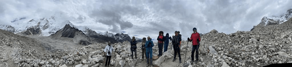 The last leg of the journey was definitely the most challenging. Our trek took longer than usual, often times we had to stop and take a breather, the most challenging part of it might have to be the altitude. We took our lunch at Gorak Shep and headed out towards EBC soon after. The terrain was rocky and slippery at the same time. It took around 2 hours to reach Everest Base Camp from Gorek Shep, and around 12 grueling hours in total from the starting point at Lobuche. All worth it in the end, as we were greeted by the famous Khumbu glaciers, beautiful Sherpa prayer flags and the very famous Everest Base Camp Rock.